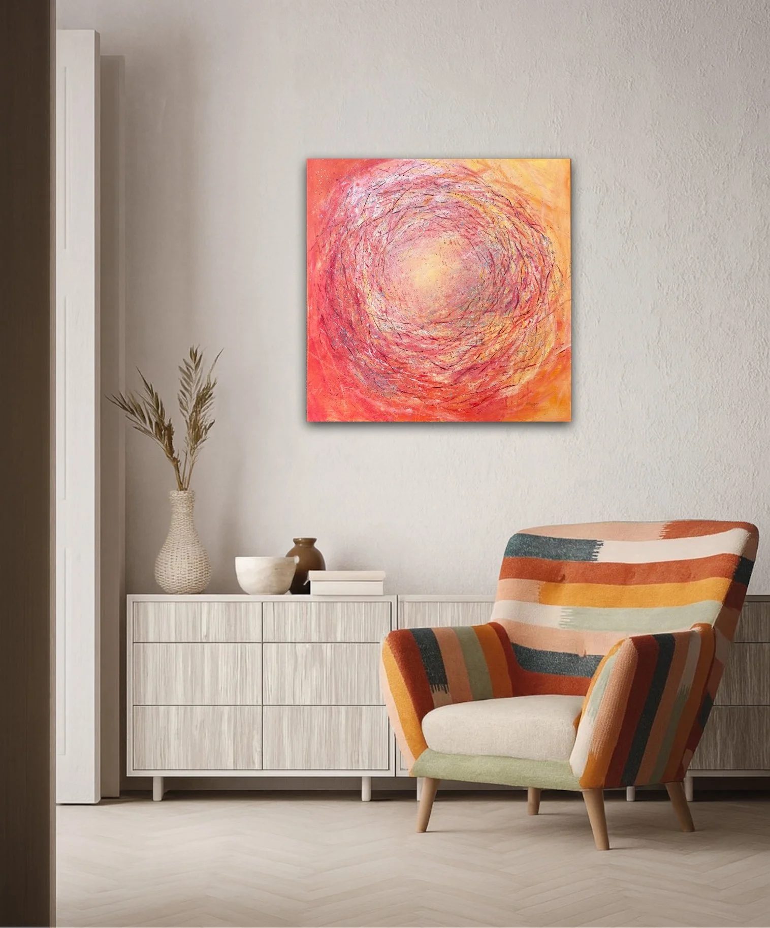 My hope is that these paintings offer a sense of comfort and uplift—a visual pause that invites peace, reflection, possibility, and connection. Whether they evoke home, hope, nature, motherhood, or imagination, I believe the nest carries a universal reassurance. It speaks gently to our need to feel protected and grow, our need for love and a calm space for ourselves. I invite you to experience the gentle power and message I wish to express with my visual art. Visit my Abstract Shop to see the other paintings in this Nest Series, and to explore my other contemporary artwork.