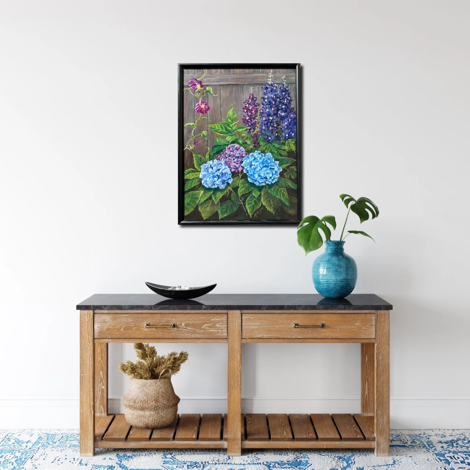 "Double Take" is a captivating botanical painting that layers delicate floral, leaf, and fern imagery to evoke a mesmerizing "double exposure" effect. Rich hues of wine, burgundy, merlot, and oxblood intertwine with soft cream, pink, and a touch of deep golden yellow, creating a harmonious and elegant composition. The artwork is beautifully matted and framed in a complementary wood frame, making it a stunning addition to any space. This original floral botanical art is perfect for adding elegance to your home or office decor.