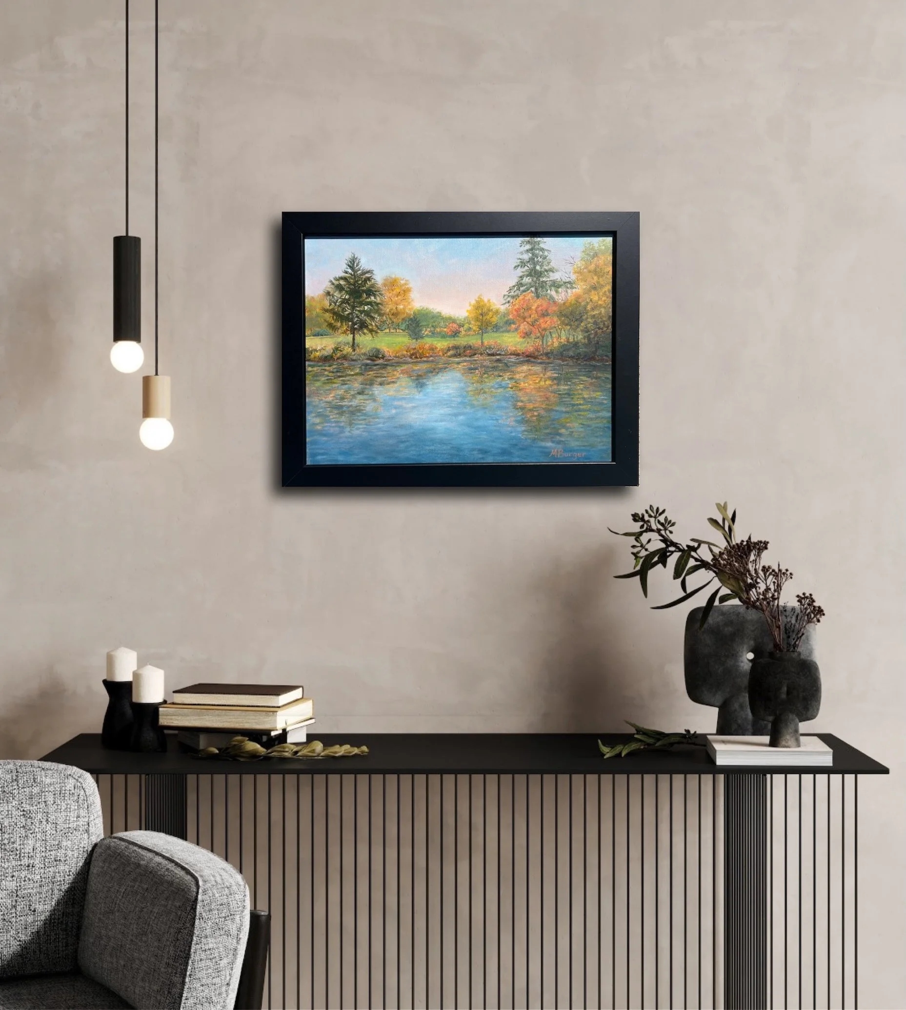 Paintings in this shop may be oil, acrylic, pastel or mixed media. Some of my paintings are framed; descriptions will inform you. Some “insitu” or ‘in room” photos present a painting with a different frame for decor options and aesthetic possibilities. Feel free to contact me if you have questions about my work. I’m sure we can work together to find a solution to what you would like.