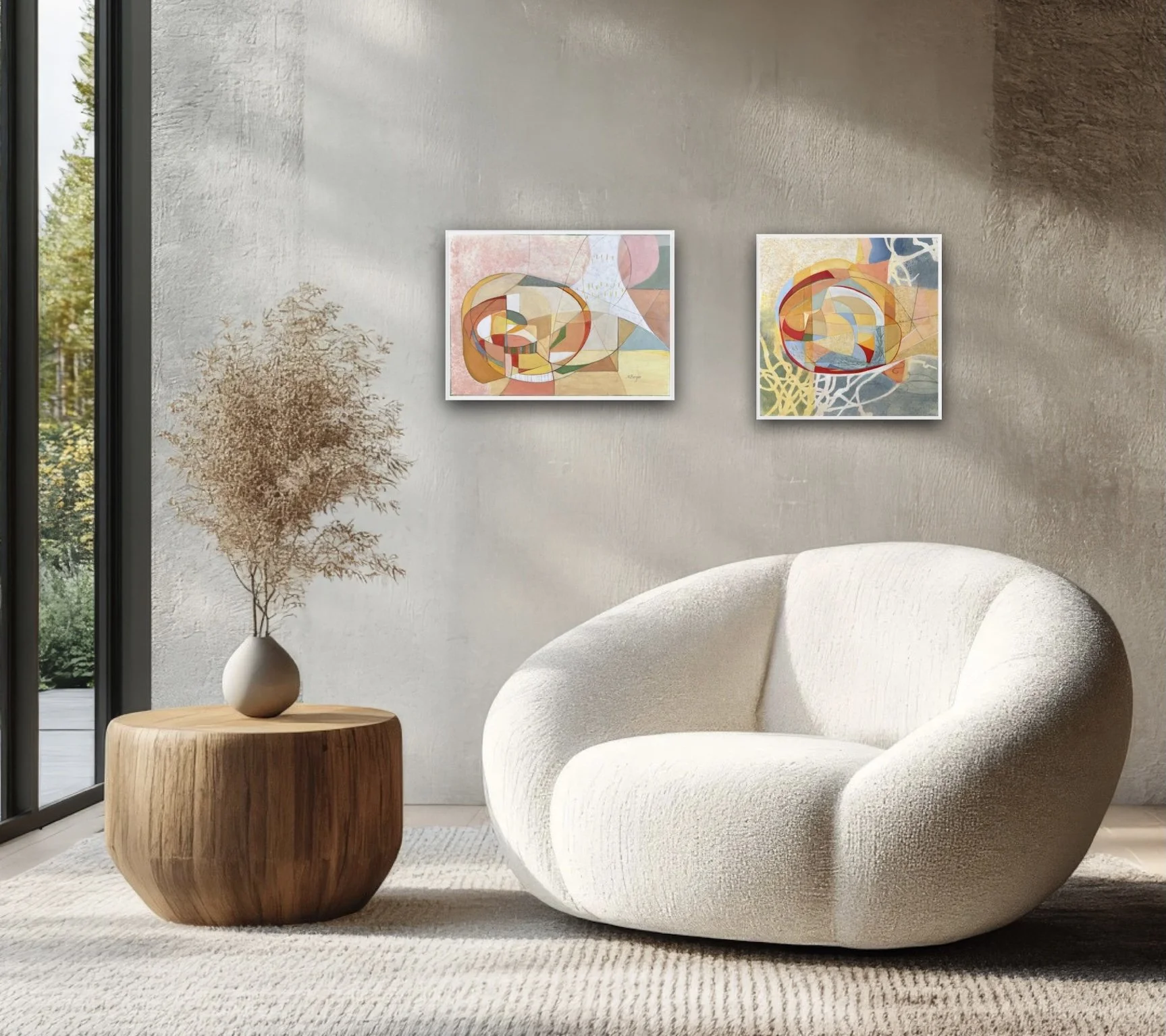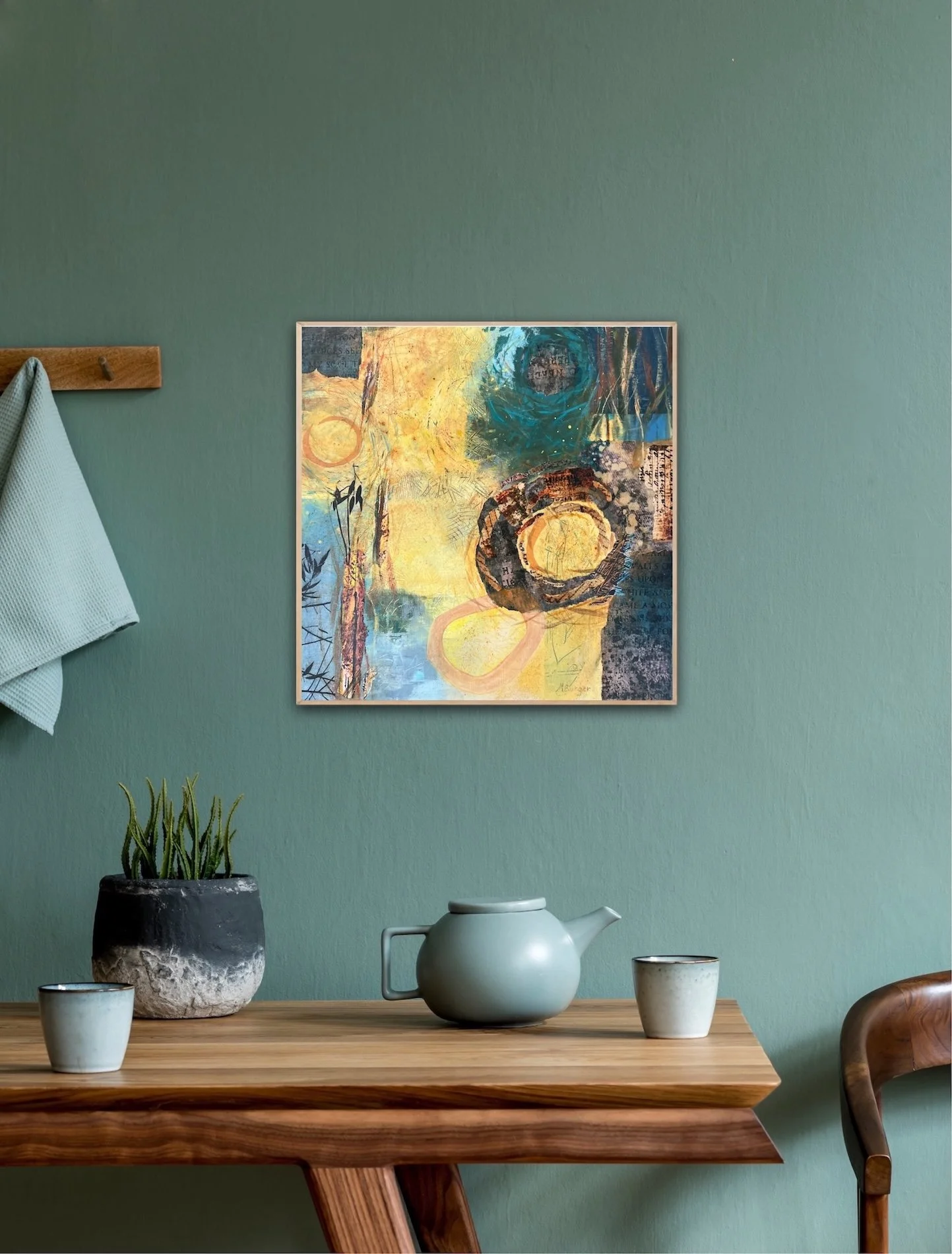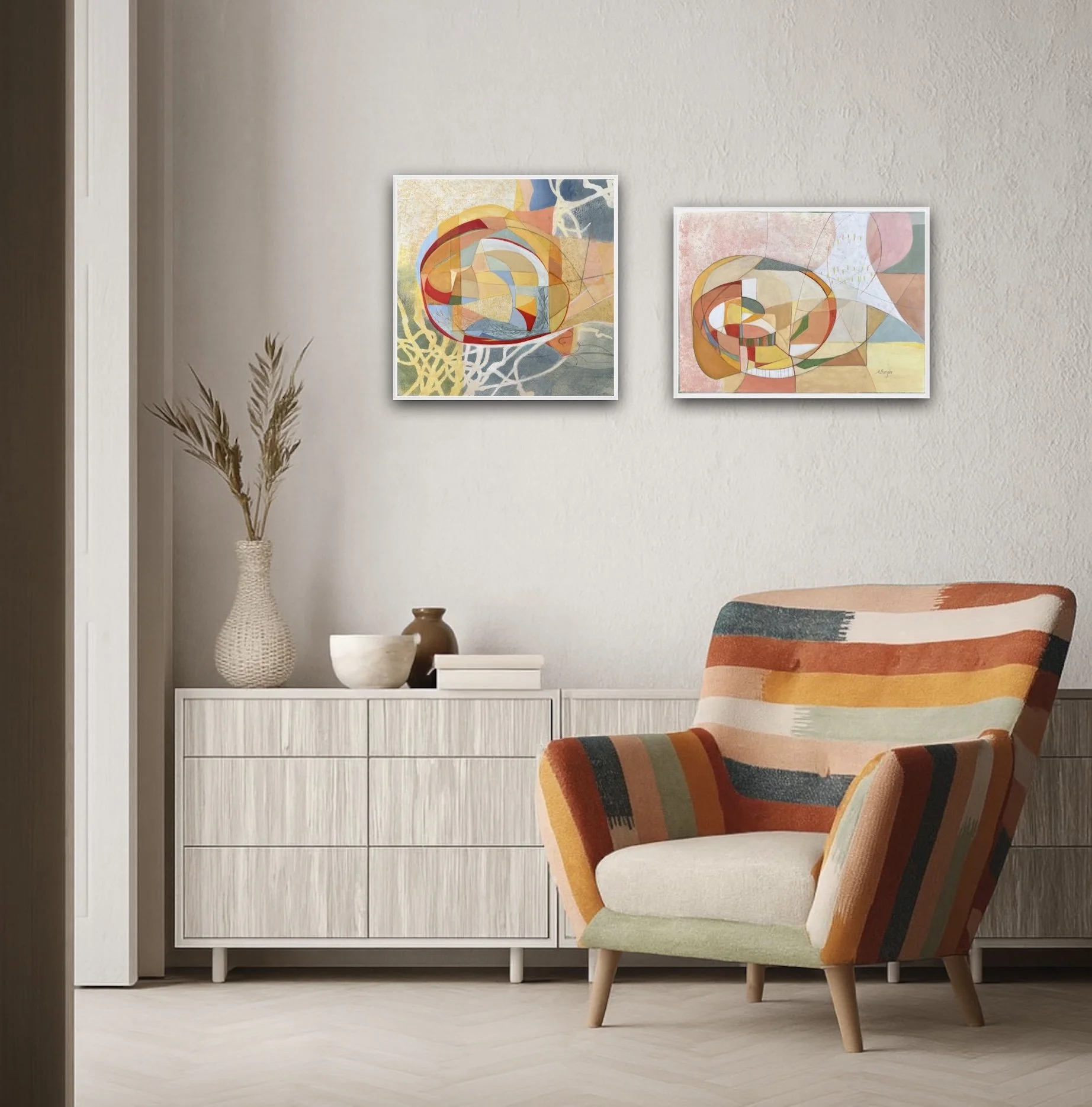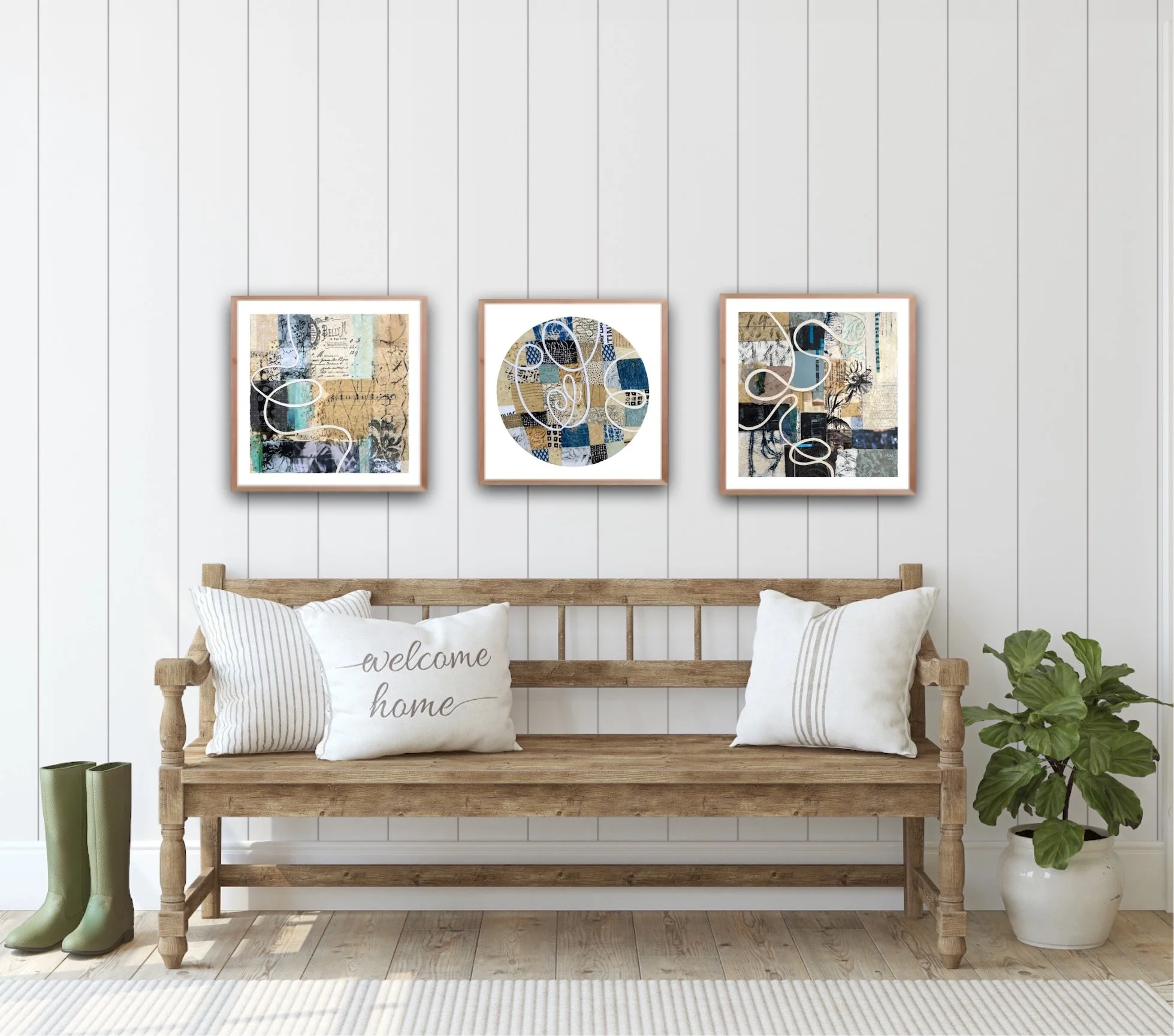 My passion for art has led me to explore abstract painting, collage and mixed media. A grouping of paintings will make a statement and add creative energy to your room.